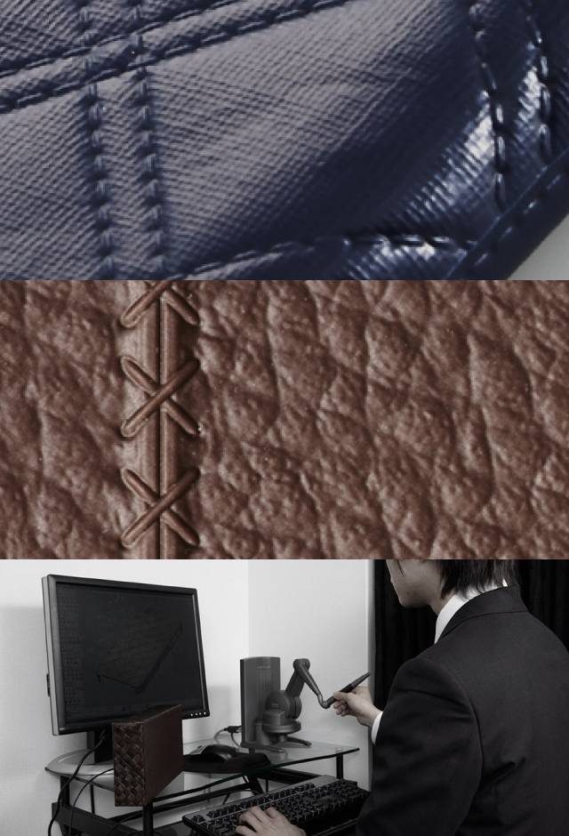 そのひとつが「D3テクスチャー」。ケイズデザインラボが開発した触感デザインプロセス、D3テクスチャーは、布や革といった天然素材や写真を3Dスキャンしたり、元となるデザインをテクスチャーに落とし込み、それをプロダクトのベースに幾重にも重ねて貼り付けることにより、これまでの技術では困難であった自然な風合いや凹凸の再現、また、起伏が重なった複雑なカッティングや成形を可能にしました。これにより、従来にはなかったオリジナル性の高い立体感あるテクスチャーが制作できるのです。