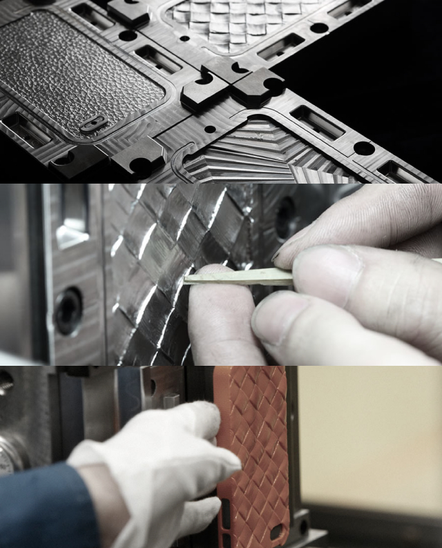D3テクスチャーでデザインした最先端のデータを製品として完成させるには、同じく日本の繊細な技術を持った成形工場が必要です。